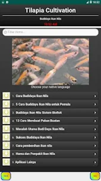 Além de abordar a alimentação onívora das tilápias, que inclui plâncton e plantas aquáticas, o aplicativo também fornece exemplos práticos de cultivo. Com uma interface acessível, o 'Tilapia Cultivation' é ideal para quem busca entender os fundamentos da piscicultura e garantir uma criação saudável e produtiva.